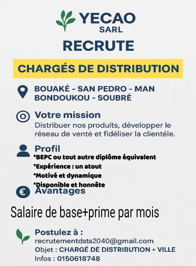 AVIS AUX DEMANDEURS D'EMPLOI : NE DONNEZ EN AUCUN CAS DE L'ARGENT aux recruteurs utilisant la plateforme macarriere.ci Nous déclinons toute responsabilité quant aux préjudices pouvant découler de ces agissements et nous nous réservons le droit de poursuivre les auteurs.