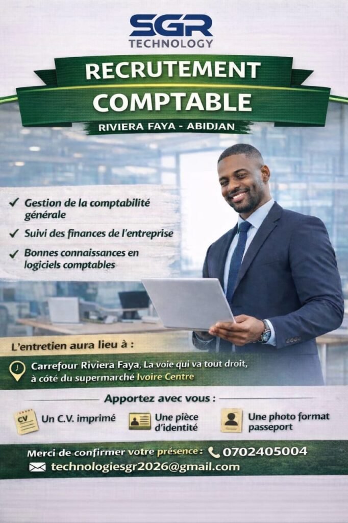 AVIS AUX DEMANDEURS D'EMPLOI : NE DONNEZ EN AUCUN CAS DE L'ARGENT aux recruteurs utilisant la plateforme macarriere.ci Nous déclinons toute responsabilité quant aux préjudices pouvant découler de ces agissements et nous nous réservons le droit de poursuivre les auteurs.